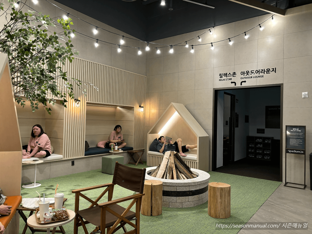 캠핑컨셉의 캠핑존과 정말 편안해 보이는 구름같은 쇼파석까지! 어디든 자리만 난다면 달려가세요:)